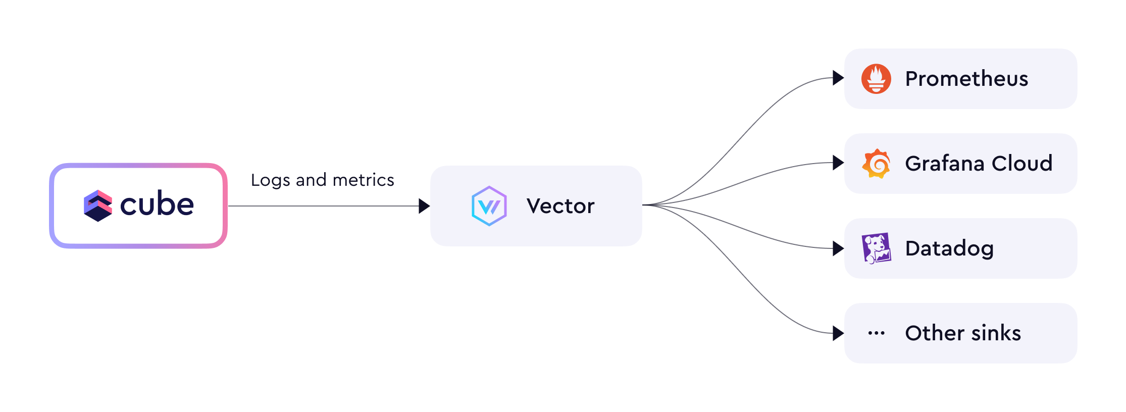 Metrics are exported in the Prometheus format which is compatible with the following sinks:prometheus_exporter(native to Prometheus, compatible with Mimir)prometheus_remote_write(compatible with Grafana Cloud)
